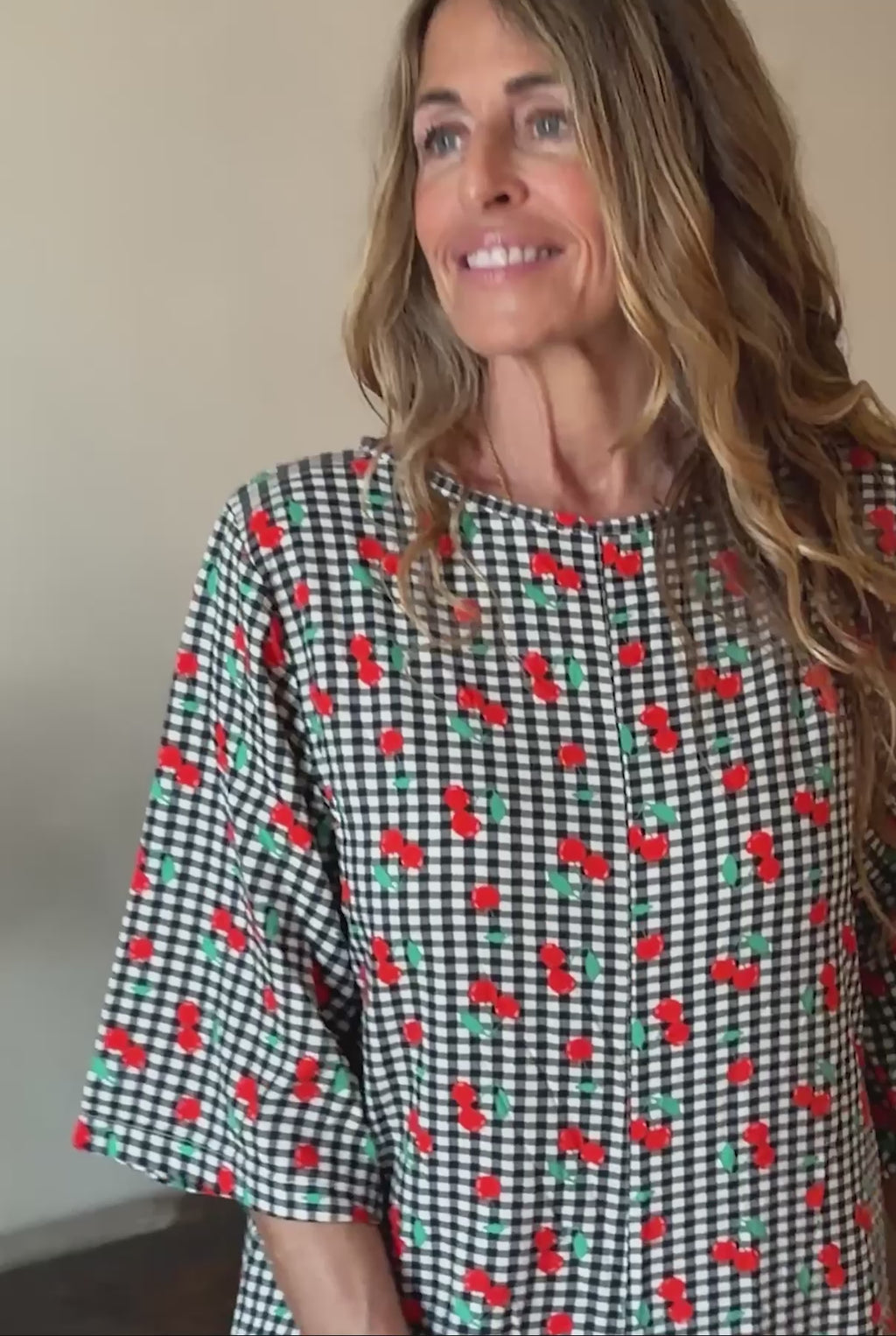 Combinaison à manches évasées - Vichy Cerises Noir